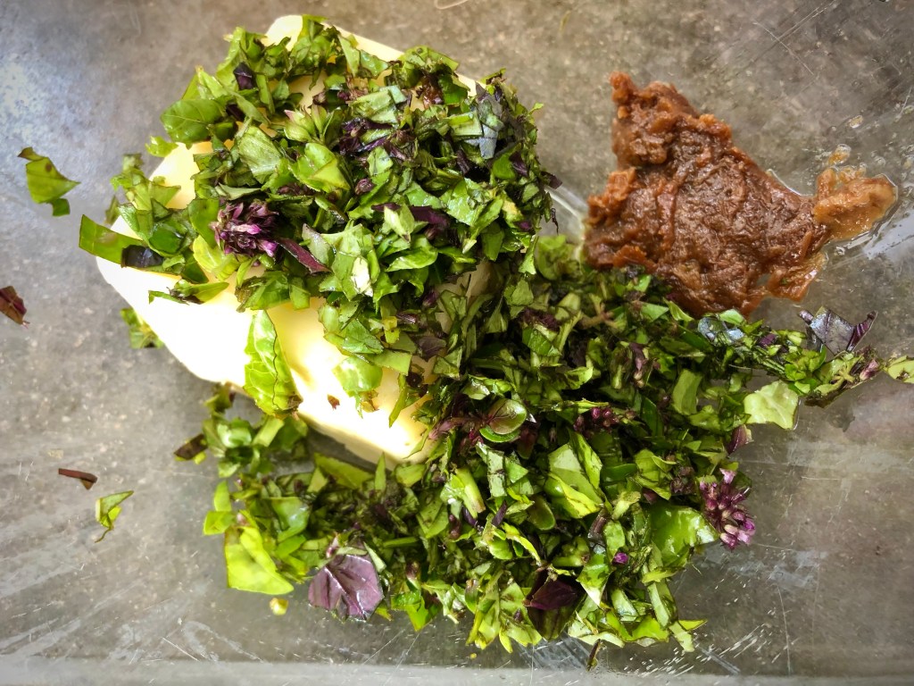 This week I needed to prune my basil, but didn’t have enough to make a full batch of pesto so I decided compound butter would be the perfect way to use up the extra herbs.