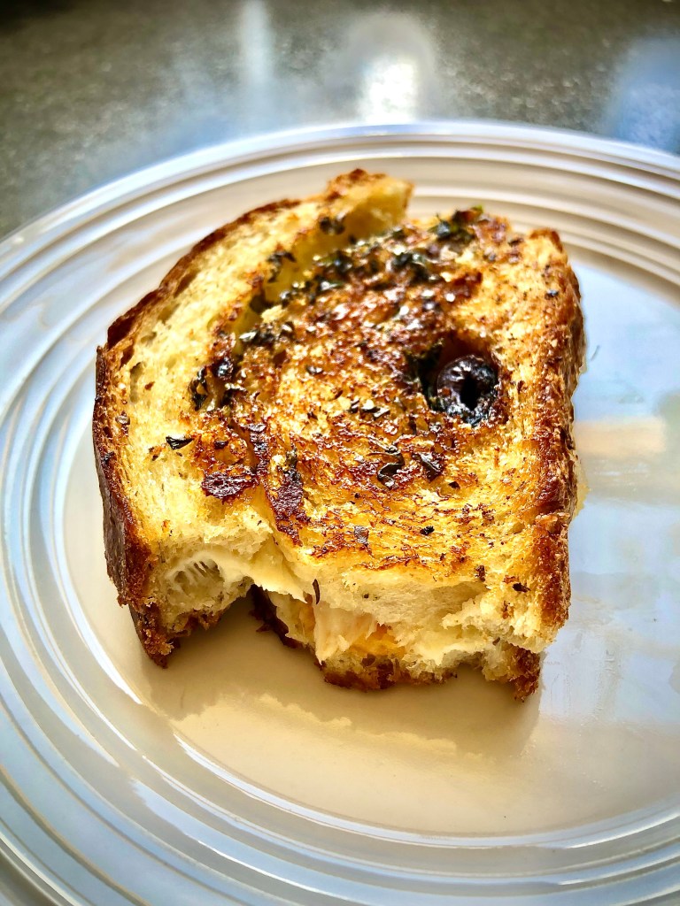 I already used this compound butter on grilled cheese sandwiches with the olive bread and it was to die for!