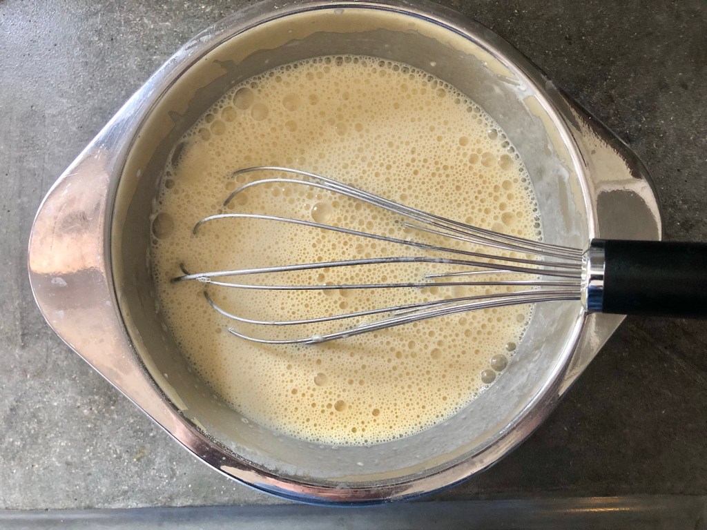 - Melt butter in a frying pan on low heat. Then add breadcrumbs and mix together.