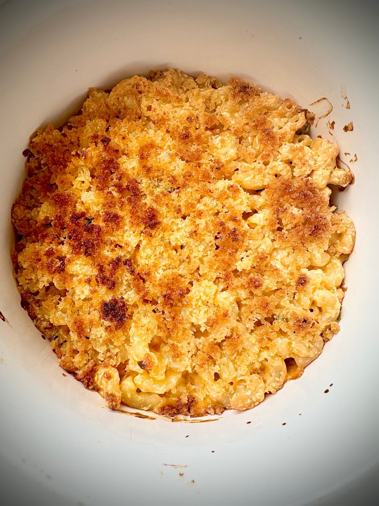 I should also caution you not to make the same mistake that I did when I first started adding breadcrumbs to the top of mac & cheese.