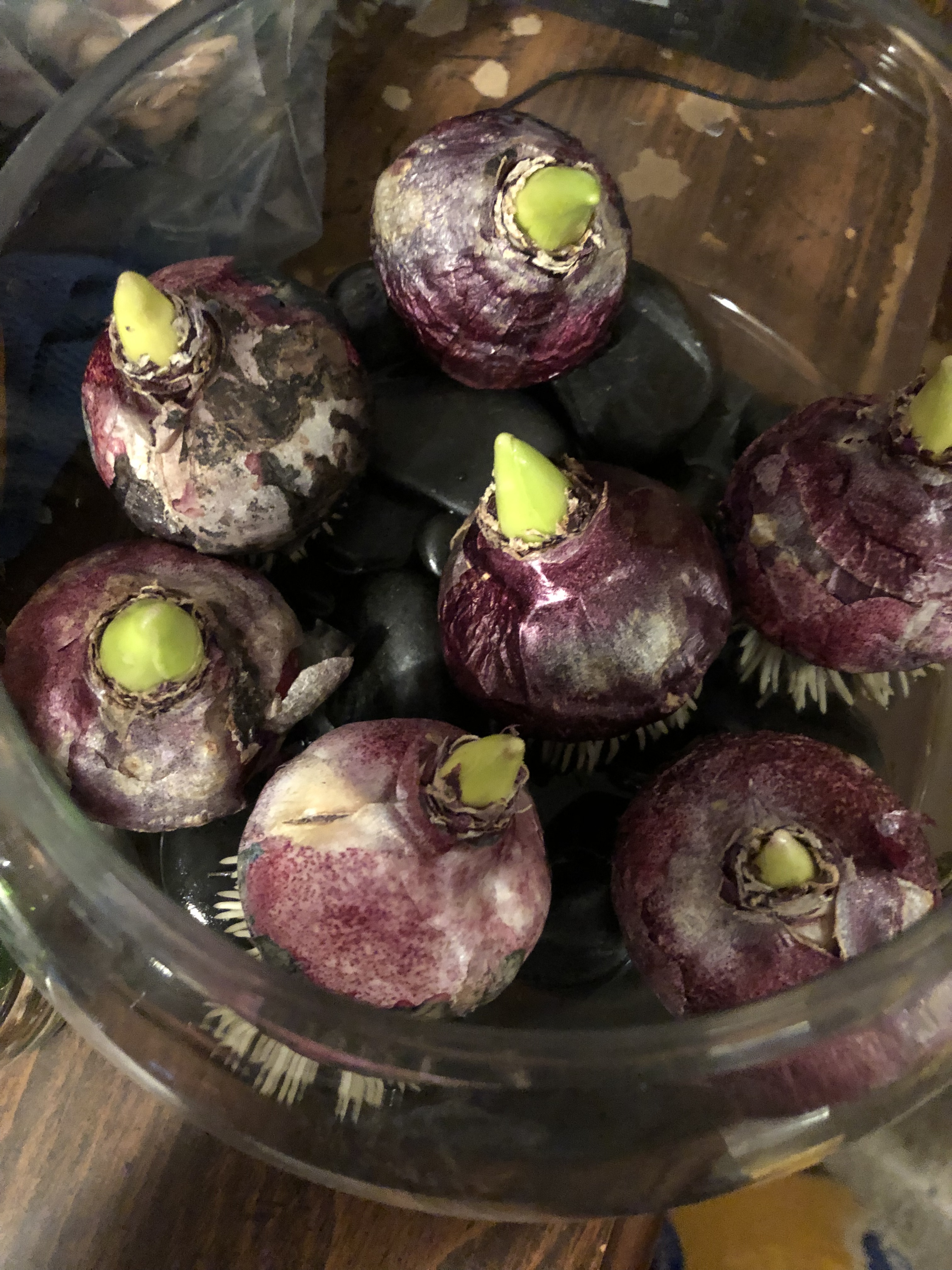WARNING! The Hyacinth bulbs cause skin irritation, so you should either wear gloves or wash your hands immediately after working with them (do NOT touch your face like I did… I had to find out the hard way that they cause an itchy reaction).