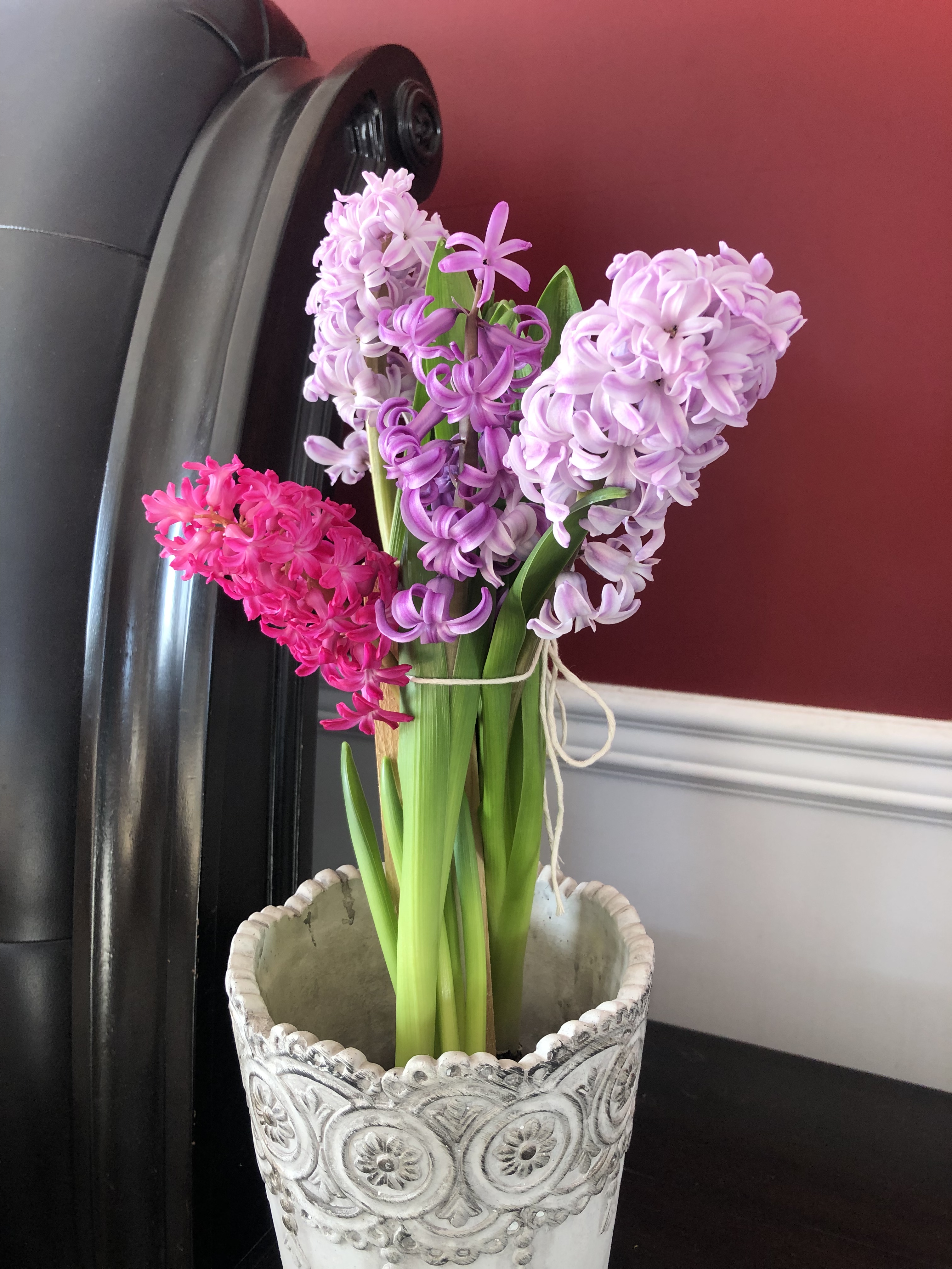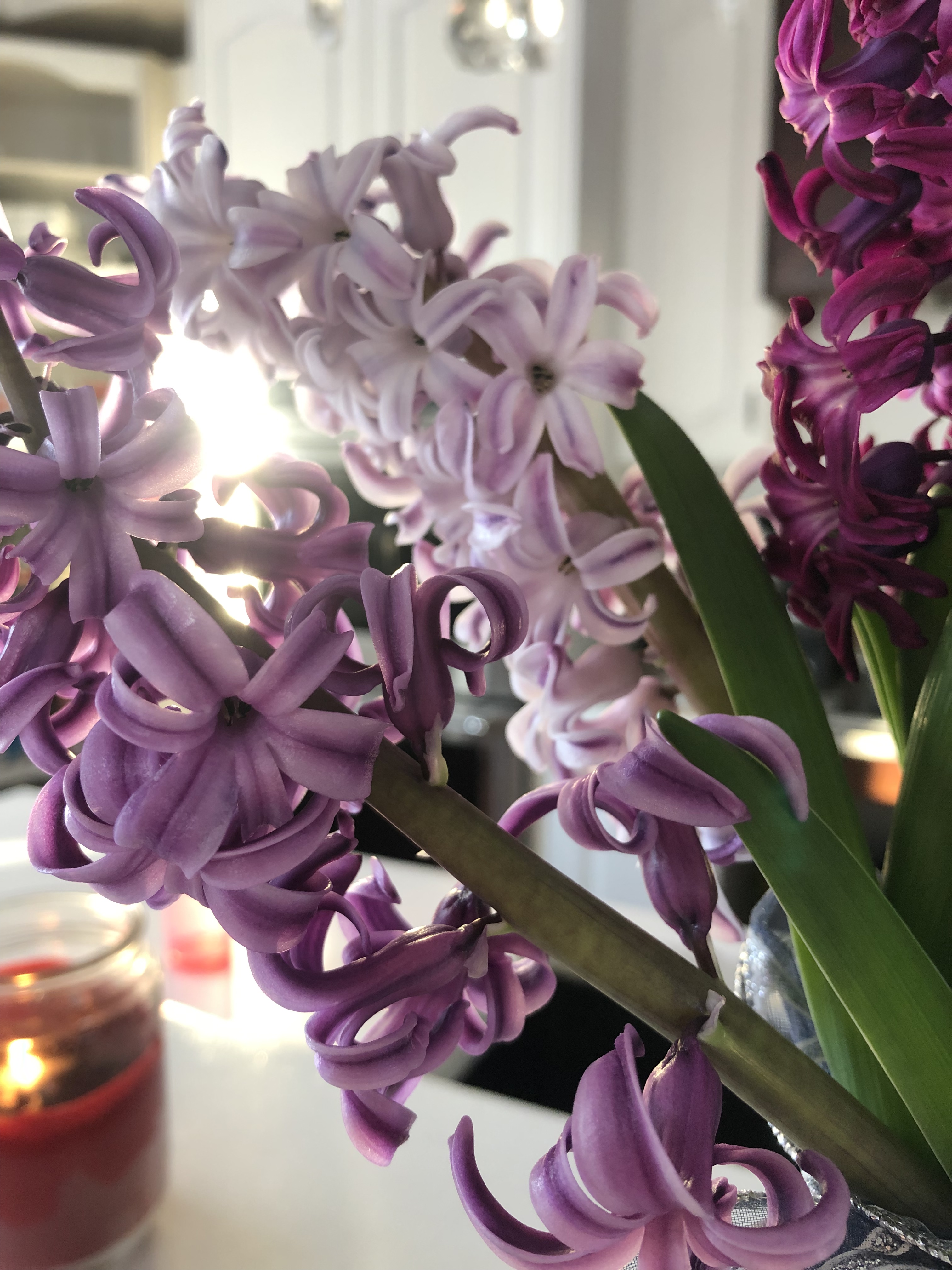 The gentle fragrance of the Hyacinths fills the room and adds the perfect pastel colours to my kitchen, dining room, and bedroom. I love flowers, and live flowers rather than cut flowers seem so much sweeter!
